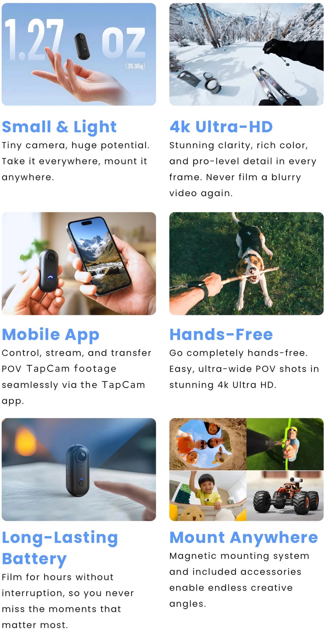 Ultra Magnetic 360° SnapClip – Snap your TapCam onto anything and rotate 360° for perfect angles. (Worth $15) FREE